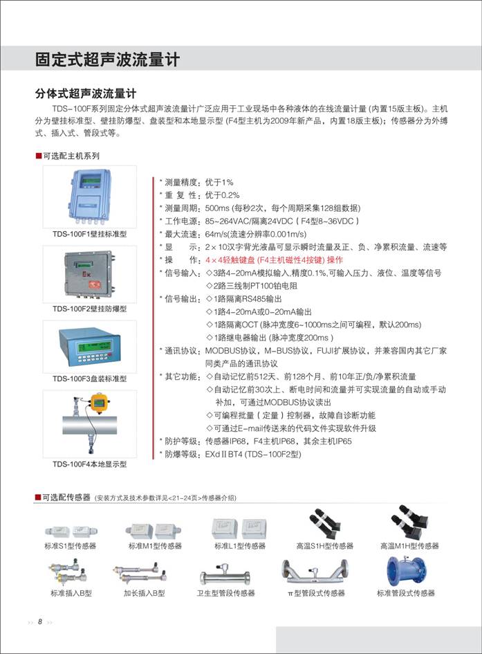 AK-TDS-100F型固定式超聲波流量計(jì)利用了低電壓、多脈沖時(shí)差原理,采用高精度和超穩(wěn)定的雙平衡信號(hào)差分發(fā)射、差分接收數(shù)字檢測(cè)技術(shù)來(lái)測(cè)量順流和逆流方向的聲波傳輸時(shí)間,根據(jù)時(shí)差計(jì)算出流速。具有穩(wěn)定性好、零點(diǎn)漂移小、測(cè)量精度高,量程比寬抗干擾性強(qiáng)等特點(diǎn)。