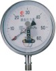 當被測介質的壓力作用于膜盒時,其自由端產生相應彈性變形一位移,經拔桿帶動傳動機構放大,由指示裝置將被測壓力在儀表度盤上指示出來。同時指針帶動電接點裝置的活動觸點與設定指針上的觸點(上限或下限)相接觸的瞬時,致使控制系統接通或斷開電路,以達到自動控制和發信報警的目的。