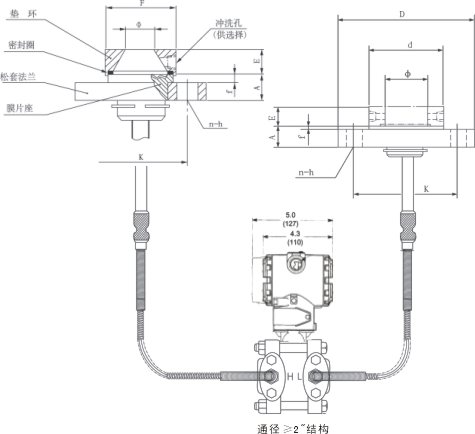 AK-3051DP雙法蘭液位變送器是一種通過(guò)安裝在管道或容器上的遠(yuǎn)傳裝置來(lái)感受被測(cè)壓力,該壓力經(jīng)毛細(xì)管內(nèi)的灌充硅油(或其它的液體)傳遞至變送器的主體,然后由變送器主體內(nèi)的δ室和放大線(xiàn)路板,將壓力或差壓轉(zhuǎn)換4~20mA.DC信號(hào)輸出(參見(jiàn)結(jié)構(gòu)原理圖)。 |