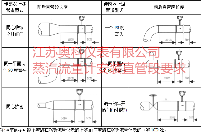 注:調(diào)節(jié)閥盡可能不安裝在渦街流量?jī)x表的上游,而應(yīng)安裝在渦街流量?jī)x表的下游10D處。
