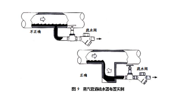 疏水是否充分的標(biāo)志是蒸汽管中是否排得出凝結(jié)水。如圖8所示的配置能從后一個疏水器中的排水量獲得判斷。后一個疏水器如果極少有水排出,則表明前一只疏水器已充分疏水。