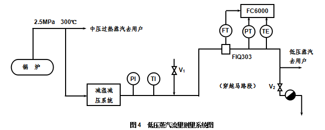 該工廠的鍋爐房除了向全廠供應(yīng)中壓過熱蒸汽外,還經(jīng)減溫減壓系統(tǒng)向全廠供應(yīng)0.4MPa(g)、160℃低壓過熱蒸汽。FIQ303就是對這路蒸汽進(jìn)行計量的蒸汽流量計儀表。