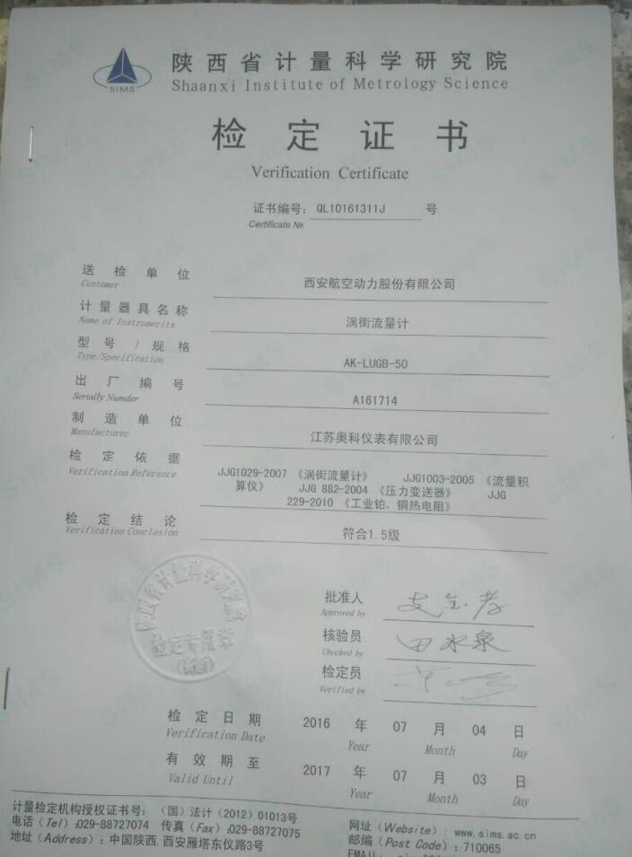 此文關鍵字:陜西,計量,研究院,檢定,證書,